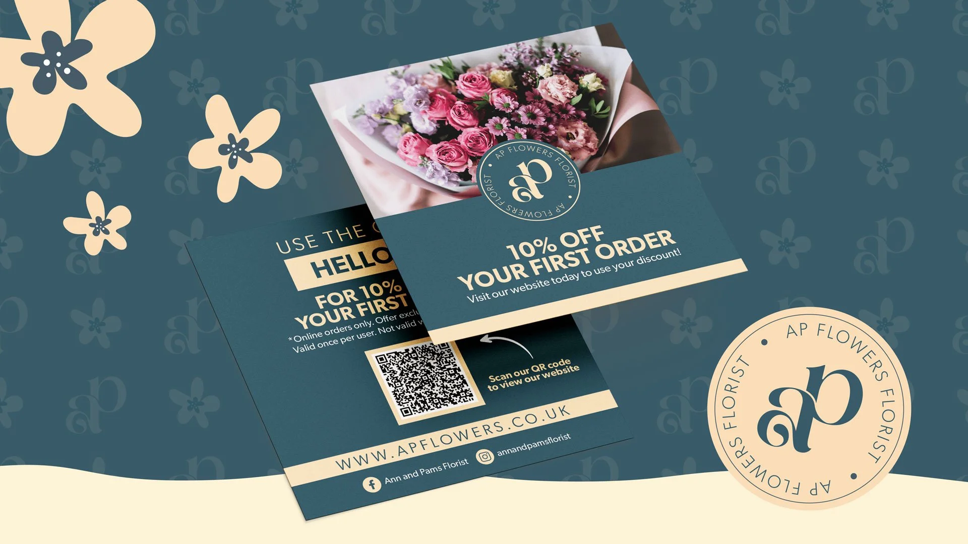 AP Flowers is a family-run florist dedicated to creating beautiful, long-lasting bouquets that bring warmth, joy and connection to every occasion.With nationwide delivery and a deeply personal, customer-first ethos, the brand needed to feel both premium and heartfelt. I created an elegant, contemporary visual identity that balances sophistication with approachability, using rich, confident colours, refined typography and soft floral detailing to reflect the quality of the arrangements and the care behind them. The branding was designed to work seamlessly across packaging, print and digital touchpoints, helping AP Flowers stand out as a florist that delivers not just flowers, but meaningful moments.